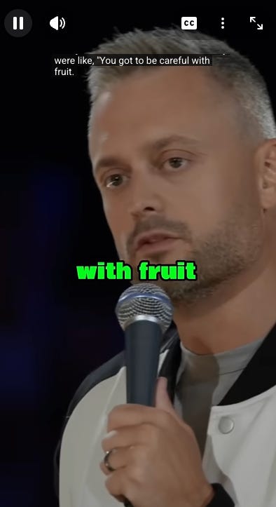 (Click the link above to watch a bit from Nate Bargatze about people warning him to be careful about eating too much fruit.)